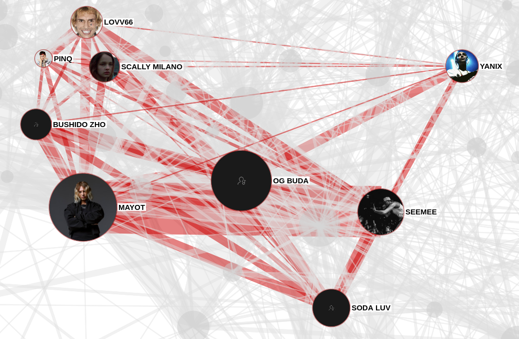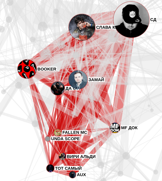 Но кто же всё-таки записал больше всего фитов в русском рэпе? Если не учитывать размер и популярность, а просто посчитать рэперов в фитах из Spotify, топ получается таким: